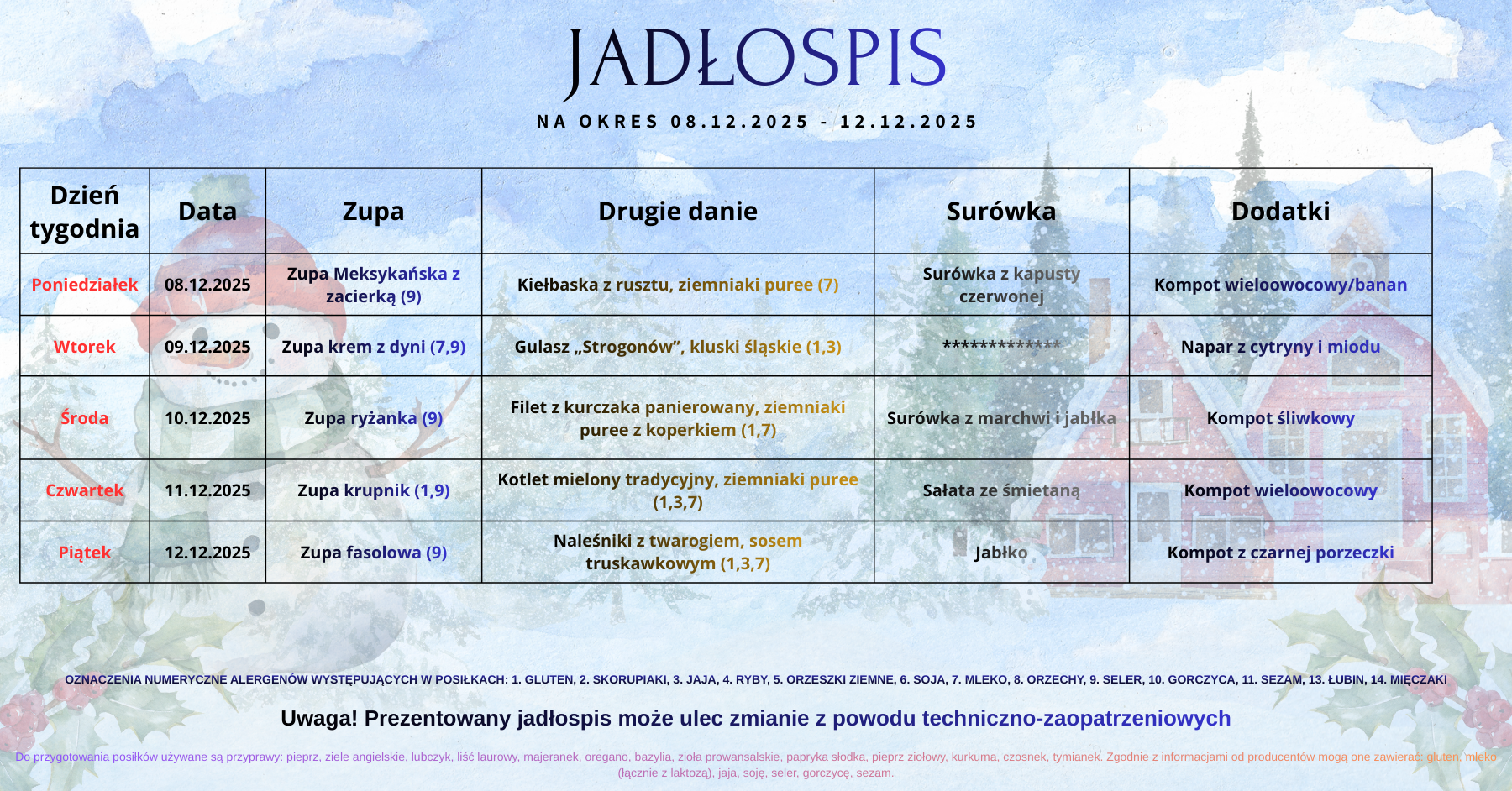 Uprzejmie informujemy, że koszt obiadów za miesiąc grudzień 2025 wynosi 105 zł.